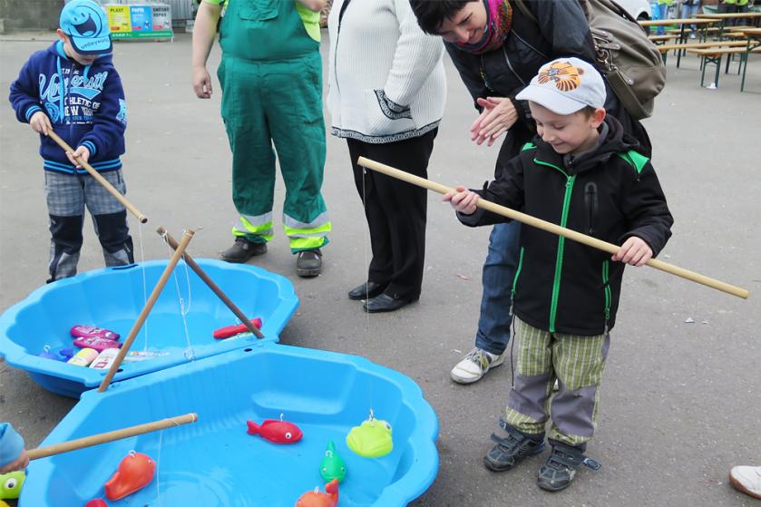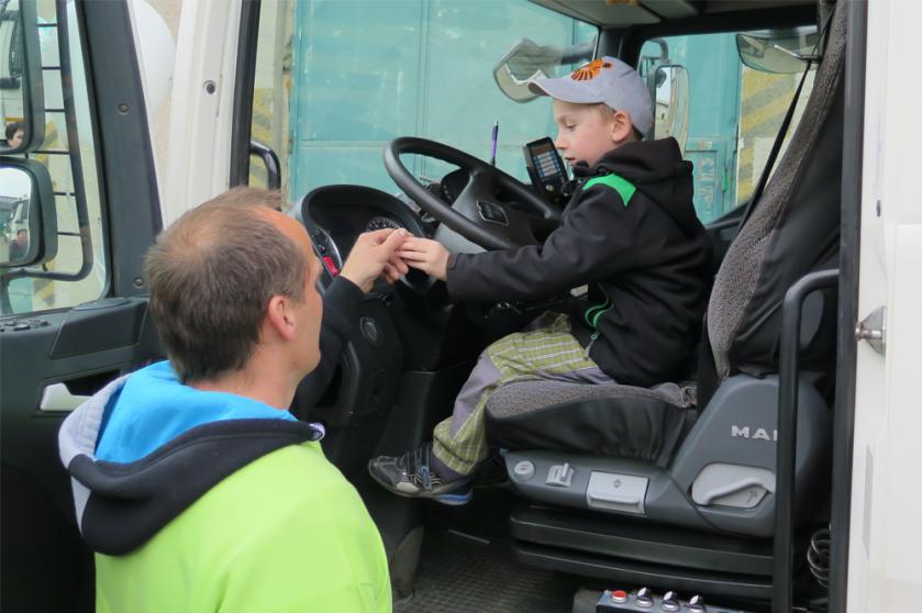 Krásný den připravili dětem pracovníci společnosti Esko-T, která v Třebíči zajišťuje svoz odpadů. V jejím sídle na Hrotovické ulici si dnes mohly společně se svými rodiči prohlédnout svozovou techniku, ale také se zúčastnit různých soutěží nebo se svézt na kolotoči a šlapacích autech či dokonce zaskákat v nafukovacím popelářském autě.